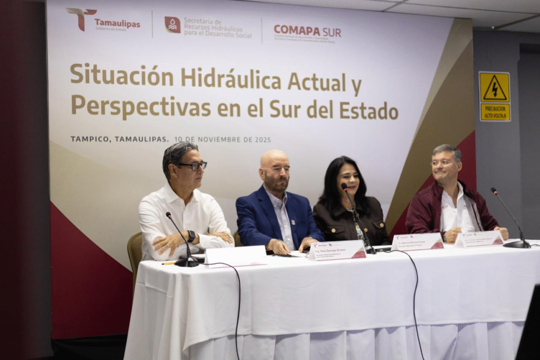 Encabezaron este encuentro el secretario de Recursos Hidráulicos para el Desarrollo Social, Ing. Raúl Quiroga Álvarez, acompañado del gerente general de COMAPA SUR, Mtro. Francisco José González Casanova, junto con los alcaldes de Tampico, Mónica Villarreal Anaya, y de Ciudad Madero, Erasmo González Robledo, quienes refrendaron su disposición de sumar esfuerzos y coordinar acciones bajo el respaldo del Gobierno del Estado de Tamaulipas.