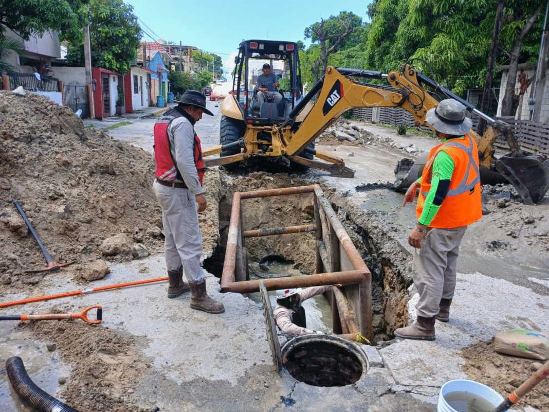 Una vez que mejoraron las condiciones climáticas, COMAPA SUR inició los trabajos de rehabilitación de un colector de 90 metros lineales y 24 pulgadas de diámetro, que colapsó a causa de las intensas lluvias, provocando un socavón en la calle Otilio Álvarez, casi esquina con Rivera de Champayán, en la colonia Tancol, en Tampico.